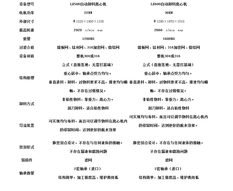 LX全自動(dòng)卸料離心機(jī)參數(shù)表:(部分規(guī)格)