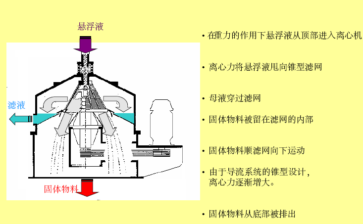 設(shè)備簡(jiǎn)介:LX系列全自動(dòng)離心-下卸料-導(dǎo)流式離心機(jī),是我公司技術(shù)成熟的一種離心過(guò)濾設(shè)備。該離心機(jī)為導(dǎo)流式錐形轉(zhuǎn)鼓離心機(jī),其獨(dú)特的導(dǎo)流裝置,可以調(diào)整物料在離心機(jī)內(nèi)的停留時(shí)間,使固體物料含液量降到最低,對(duì)于固體顆粒大于30~40μm的物料都能取得令人滿意的效果。實(shí)現(xiàn)了自動(dòng)連續(xù)離心下卸料,用作過(guò)濾離心脫液,產(chǎn)品廣泛應(yīng)用于電力環(huán)保、礦山、化工、冶金、造紙、食品、制藥及煤炭等行業(yè)。